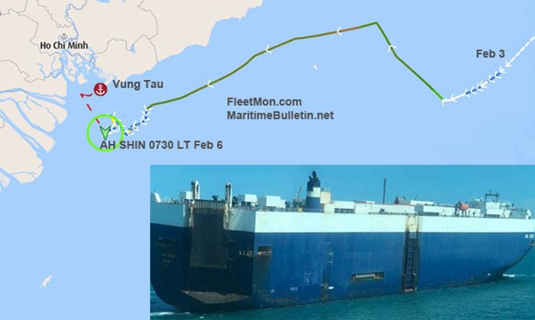 AH SHIN is reported to be carrying 4,530 cars with 21 Russian sailors on board, and was en route from the Republic of Korea (RoK) to Singapore, when fire broke out as she was passing by the coast of Binh Thuan, another province in southern Vietnam.